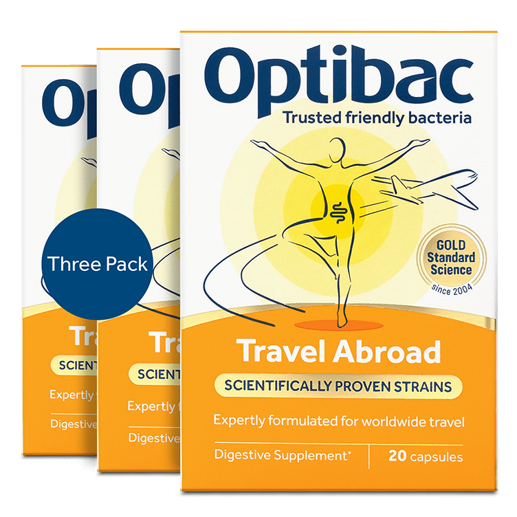 The best friendly bacteria supplement for travel is one which has been designed especially for travelling, and contains live cultures which have been specifically researched and selected for that purpose1,2,3. Optibac Travel Abroad is a highly researched live cultures food supplement expertly formulated for travel. The premium strains in this specialist travel product include the renowned Saccharomyces boulardii, scientifically trialled in thousands of travellers1 and proven to reach the gut alive to complement the gut bacteria. Travel Abroad is suitable for use alongside travel medications and in warmer climates, giving holiday-goers the confidence to enjoy their adventures worry-free.