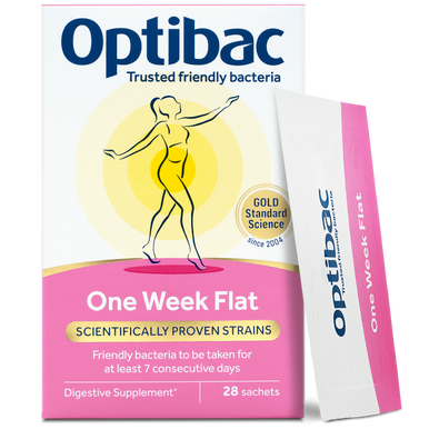 Optibac Probiotics One Week Flat is an easy seven-day course of probiotics and prebiotics, formulated to support digestive health, especially occasional bloating. Contains four high-quality probiotic strains which complement the natural gut bacteria.